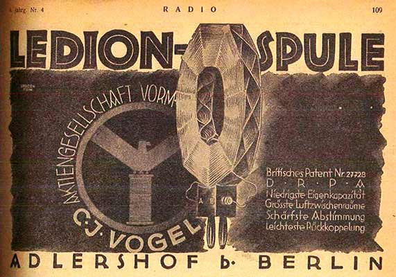 Schon 1923 waren Ledion-Spulen ein Begriff. Auch Rahmenantennen, "Ledion-Ultradyne-Empfänger", "Ledion-Tropadyne-Empfänger", "Ledion-Neutrodyne-Empfänger" und "Ledion-Kurzwellenempfänger" als Bausatz oder Bauplan mit Broschüre (2,00 RM) wurden nun hergestellt.