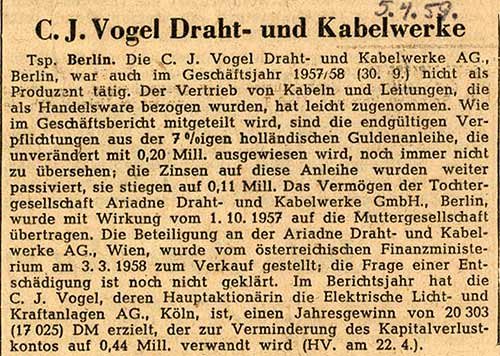 1929 wurden weitere Anteile der "Ariadne-Draht- und Kabelwerke AG" in Wien erworben. Damit besaß der Vogel-Konzern fast 100 % des Aktienkapitals.