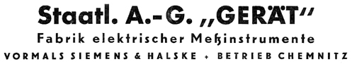 1951 Überführung in Volkseigentum. 1952 - 1953 - VEB Gerätewerk ChemnitzAm 29. September 1952 wurde Antrag auf Eintragung des "VEB RFT Gerätewerk Chemnitz" in das Handelsregister der Volkseigenen Wirtschaft gestellt. Sitz der Firma war Chemnitz 9, Waldenburger Str. 60.Gegenstand des Unternehmens waren Herstellung und Vertrieb elektrischer Geräte.