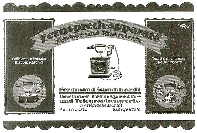 1925/26 - ? - Ferdinand Schuchhardt - Berliner Fernsprech- und Telegraphenwerk AGDer Firmensitz war in Berlin Südost 16, Köpenickerstr. 55.Die Rundfunkproduktion erfolgte unter der Marke "Allradio". Vertriebsfirma war die "Allradio-Telegraphon-Gesellschaft", auch "Gesellschaft für Funk- und Fernmeldeapparate". Ab 1929 wird der Schwerpunkt auf die Herstellung von Telefonanlagen gelegt und die Radioproduktion auslaufen gelassen.