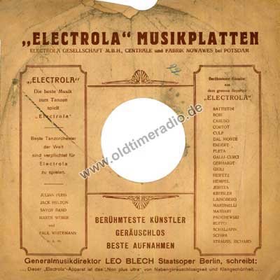 Bedruckte Schutzhüllen für Schellack-Schallplatten unterschiedlicher Marken und Größen: 5 ... 12" (125 ... 300 mm) |