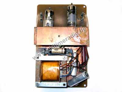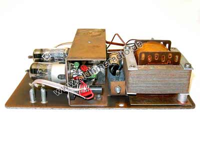 Im Verstärker werden die erforderlichen Spannungen zur Versorgung der Schaltung mit einem Trafo hochtransformiert.