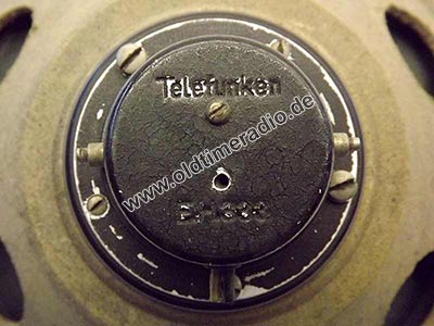 Dieser Lautsprechertyp wurde vermutlich in den DKE-Modellen nach Kriegsbeginn eingesetzt. Er hat Befestigungsohren, wodurch die Metall-Befestigungsspangen eingespart werden konnten. Eisen wurde zu Kriegszeiten immer wertvoller. Antrieb ist eine Hörmuschel des Telefonhörers "Telefunken EH 333". |