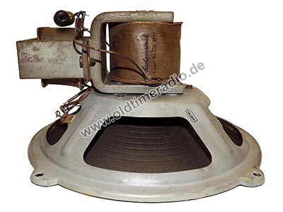 Die vermutliche Bezeichnung des Lautsprechertyps befindet sich auf der Spule des Elektromagneten: "Lager.Nr. GR 3777".