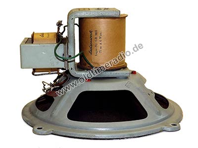 Die vermutliche Bezeichnung des Lautsprechertyps befindet sich auf der Spule des Elektromagneten: "Lager.Nr. GR 3831".