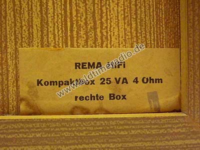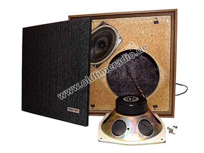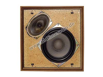 Lautsprecherbestückung: 1 x L 5914 und 1 x L 2911. Eingebaute Frequenzweiche. Diese Boxen gehören zum Radio REMA-Toccata 940 HiFi.
