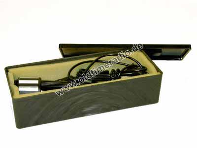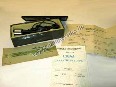 Diese Mikrofone gab es mit unterschiedlichen Aufbewahrungsboxen: Mit Schaumpolystyrolbox und separatem Ständer und mit Plastebox, deren Deckel als Ständer dient.