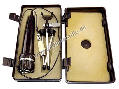 Dynamisches Hand-Richtmikrofon mit Kardioid-Richtcharakteristik, Tauchspulenmikrofon, 50 Hz ... 15 kHz. Hochohmig (1 MOhm/2 mV), ohne Schalter, 2 m Kabel (jede Verlängerung führt zu einer Verschlechterung des Frequenzverlaufes), für hochohmige Bandgeräte (z.B. BG 20, BG 26, KB 100, Qualiton M 8, Qualiton M 20, ZK 120, ZK 120 T, MK 23), Stiftbelegung: 1 = Tonspannung, 2 = Masse. |