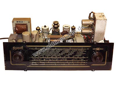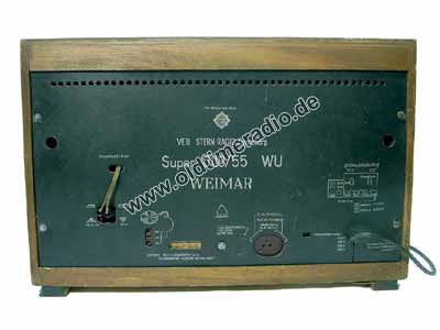 Gemeinsam mit dem Typ "6118 / 55 GWU" erstes Gerät der "Weimar"-Serie. Permeabilitätsabstimmung für alle Bereiche, UKW-Gehäusedipol. Das Loch in der Schallwand ist aus akustischen Gründen beabsichtigt und weist daher nicht auf einen fehlenden Lautsprecher hin. Eine Besonderheit ist die Verwendung der Röhre UEL 51 in einem Wechselstromempfänger. Diese Röhre wird über eine gesonderte 60-V-Wicklung des Netztrafos gespeist. Chassis-Nr. 28144 vom 9.8.1955.