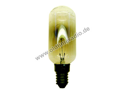 Kohlefadenlampe 10 W, erkennbar auf dem Glaskolben die Beschriftung "Aero 2 on".