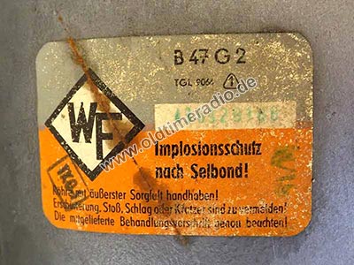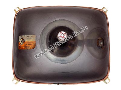 Nutzbare Schirmabmessung: 384 x 305 mm. Die Röhre wird statisch fokussiert und magnetisch abgelenkt (Buchstabe "G" = gemischt).