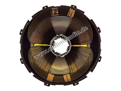 Die Ablenkeinheit hat je einen horizontalen und einen vertikalen Spulensatz, 4 einzeln justierbare Magnete am Außenring und zwei Bildzentrierbleche ohne weitere Einzel-Justiermagneten.