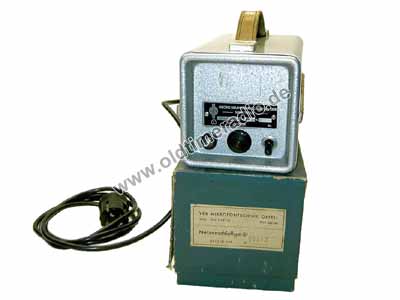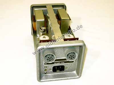 Das Netzanschlußgerät dient der Stromversorgung der Neumann-Kondensator-Mikrofone. Es ist mit einem Transistorvorverstärker TV 61 versehen. Dieser ist zwischen Ein- und Ausgang (asymmetrisch) geschaltet. Die NF-Verstärkung gestattet den direkten Anschluss des Kondensatormikrofons an einen Leistungsverstärker mit 100 mV Eingangsempfindlichkeit. Die Stromversorgung wird dem Hochspannungsteil des Netzgerätes (125 Volt) über einen Vorwiderstand entnommen. Als Transistoren sind zwei GC 101 b (TGL 200-8391) eingesetzt.