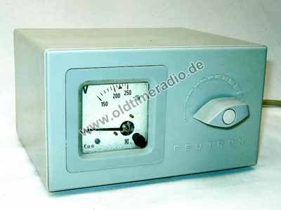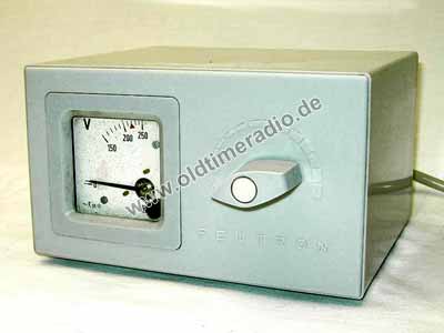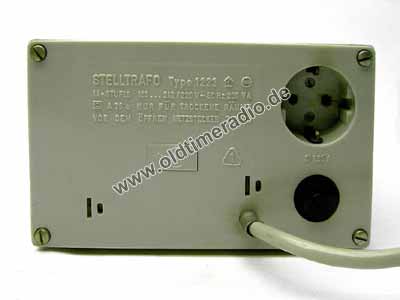 Stelltrafo zum Ausgleich von Unter-, Überspannungen zwischen 165 und 242 V. 200 VA in 14 Stufen.