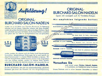 Burchard´s Salon Nadeln sind die einzigen welche vollständig geräuschlos spielen und die Platten nicht angreifen.