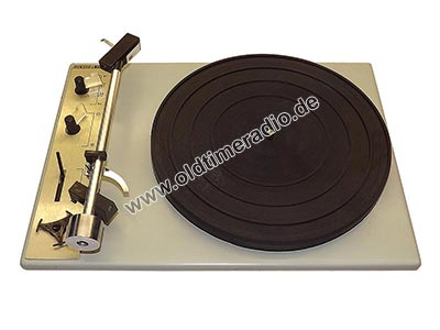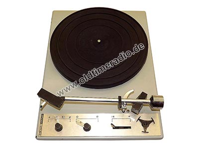 Einbauchassis mit 4 Geschwindigkeiten (16 2/3, 33 1/3, 45,11, 77,92 U/min), magnetischem Stereo-Abtastsystem "MS 16 SD" und Diamantnadel für Stereo- und Mikrorillenschallplatten. Zum Abspielen von Normalrillenplatten (78 U/min) muss das Abtastsystem durch das Abtastsystem "KS 0161 N" ausgewechselt sowie die Auflagekraft verstellt werden. Nachgeschalteter Transistor-Vorverstärker Typ 1501.03-60.00 mit Rumpelfilter und Schneidkennlinienentzerrung.