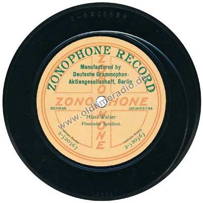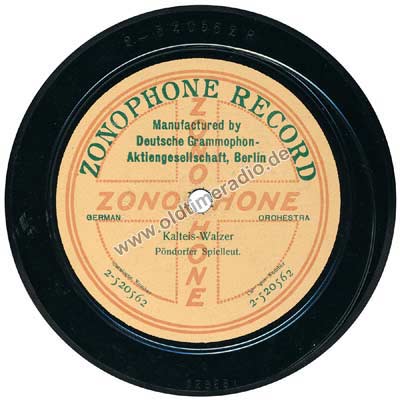 Die "Deutsche Grammophon" hat "Zonophon"-Schallplatten nur 1918 hergestellt, danach Aufgabe der Marke "Zonophon". |
