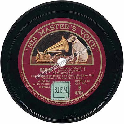 VIOLIN with Piano, Record manufactured by THE Gramophone Co., LTD., Hayes . Middlesex. England. |