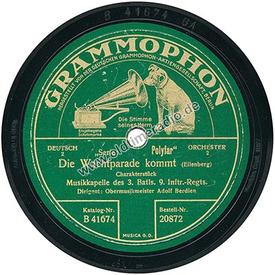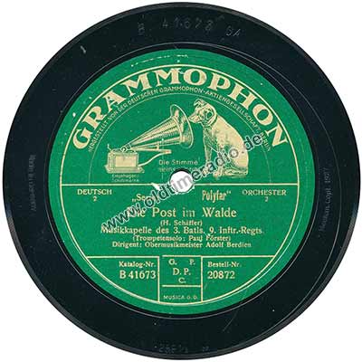Musikkapelle des 3. Batls. 9. Inftr.-Regts. Trompetensolo Paul Förster Dirigent: Obermusikmeister Adolf Berdien |