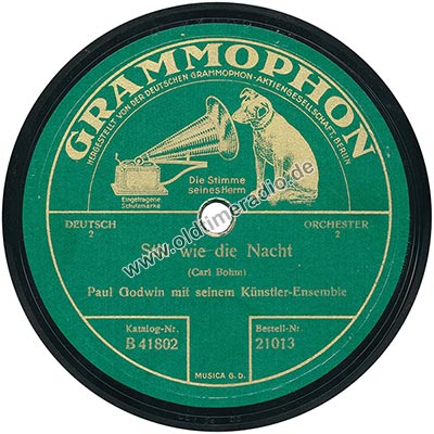Die Stimme seines Herrn, eingetragene Schutzmarke, DEUTSCH, ORCHESTER, 2m, Nur gültig in Deutschland R.G. 22.5.10. Musica G.D. |