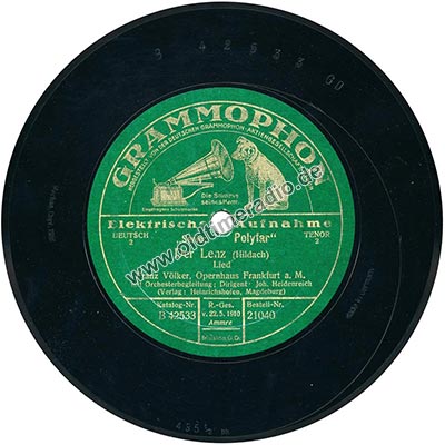Franz Völker, Opernhaus Frankfurt a.M. mit Orchesterbegleitung Dirigent: Joh. Heidenreich |