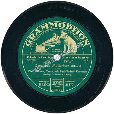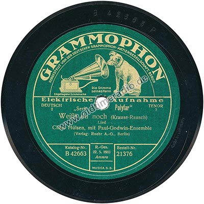 Die Stimme seines Herrn, eingetragene Schutzmarke, Elektrische Aufnahme, Deutsch, Tenor, 2, Reichsgesetz 22.5.1910, Otto Dietrich Leipzig, Musica G.D., Ammre |