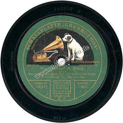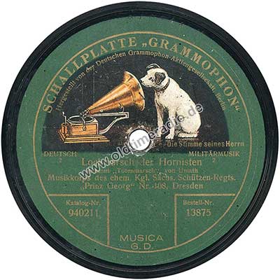 Die Stimme seines Herrn, eingetragene Schutzmarke, DEUTSCH, MILITÄRMUSIK, 2, Ammre-Marke nur gültig in Deutschland R.-G. 22.5.10, Musica G.D. |