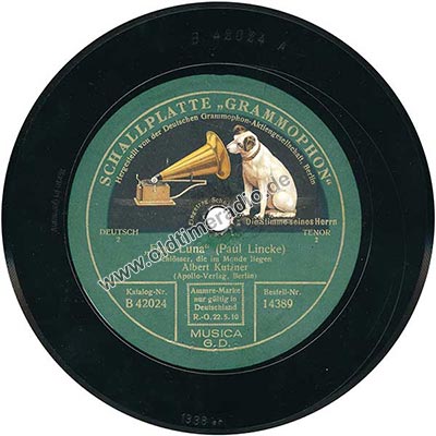 Die Stimme seines Herrn, eingetragene Schutzmarke, DEUTSCH, TENOR, 2, Ammre.-Marke nur gültig in Deutschland R.G. 22.5.10. Musica G.D. |