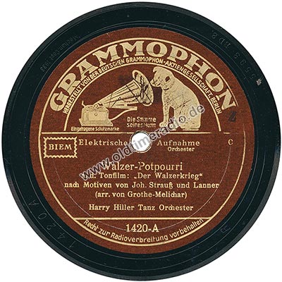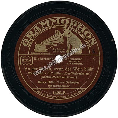 Die Stimme seines Herrn, eingetragene Schutzmarke, Elektrische Aufnahme, Orchester m. Refraingesang, C, BIEM. Recht zur Radioverbreitung vorbehalten |