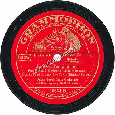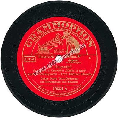 Die Stimme seines Herrn, eingetragene Schutzmarke, Orchester m. Refrainges., E, Recht zur Radioverbreitung vorbehalten |