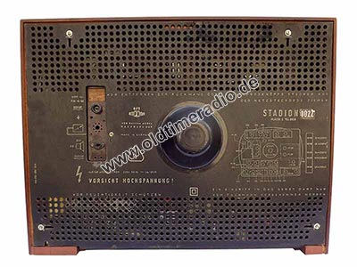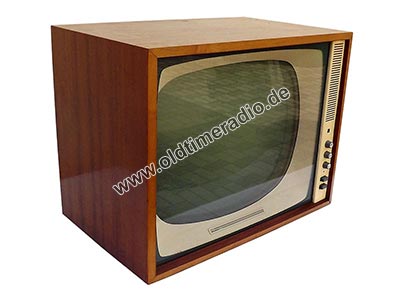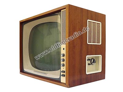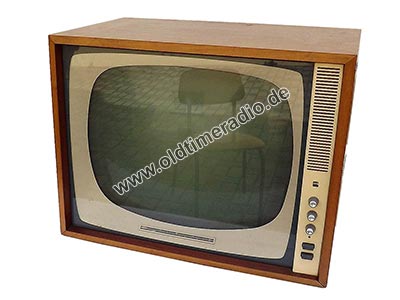 Schwarzweiß-Fernseher, Standgerät. Die Bildwidergabe erfolgt durch eine 53-cm-Bildröhre im Bildformat 4:3 (480 x 380 mm) mit einem Bildwechsel von 25 Bilder/s und CCIR-Norm (625 Zeilen).