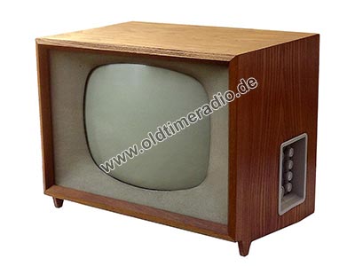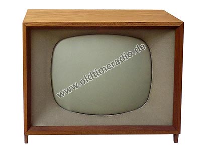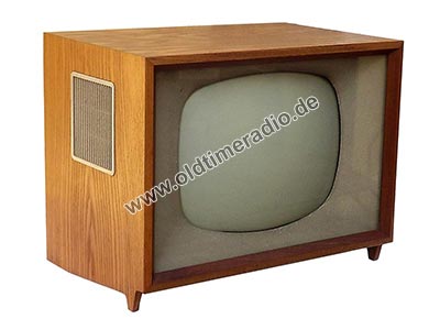Schwarzweiß-Fernseher mit Tischgehäuse. Die Bildwidergabe erfolgt durch eine 43-cm-Bildröhre im Bildformat 4:3 (285 x 362 mm) mit einem Bildwechsel von 25 Bilder/s und CCIR-Norm (625 Zeilen).