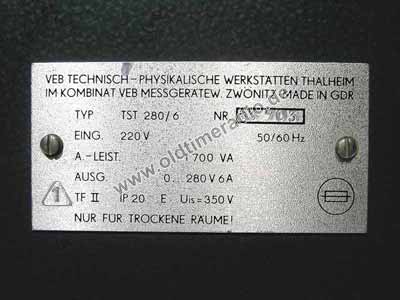 Stelltrafo mit galvanischer Netztrennung. Leistung 1680 Watt. Ausgangsspannung feinfühlig stufenlos regelbar durch großen Drehknopf von 0 - 280 Volt.