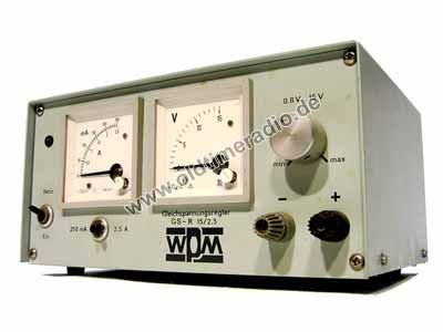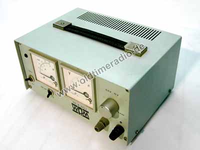 Hochkonstante Niederspannungsquelle mit geringer Restwelligkeit. Stufenlose Einstellung der Spannung von 1-15 V. 2 vorwählbare Strombereiche 250 mA und 2,5 A mit elektronischer Sicherung. Frontplatteninstrumente für Strom und Spannung.