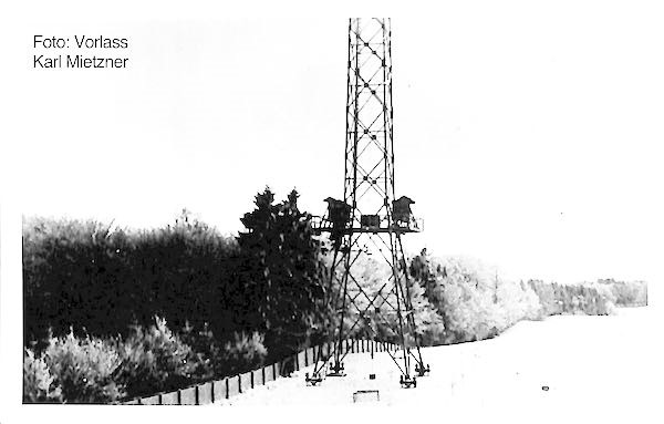 Anschließend wurde ein 96 m hoher Gittermast errichtet und die technischen Einrichtungen in der Baracke untergebracht.