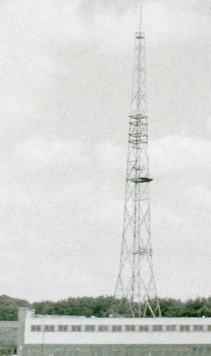 Im Juli 1955 wurde der erste Sendeturm als Stahlfachwerkkonstruktion, vorerst mit dem Fernsehton, in Betrieb genommen.