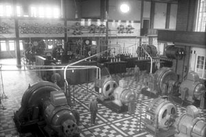 Die Sender I und II wurden mit je einem Hochfrequenzumformer mit eine Leistung von 400 kVA betrieben. Die Sender II, IV und V waren gemeinsam an einem kleinen Hochfrequenzumformer von 150 kVA angeschlossen. An den Seiten der Maschinenhalle stehen die Umformer für die Lieferung von Gleichstrom zur Vormagnetisierung der Frequenzwandler f1 und f2. Unter der Galerie hängen Kupferseilspulen, die einen Eintritt der Hochfrequenz aus den Schwingungskreisen in die Gleichstrommaschinen verhindern. Von dort gingen die Leitungen zum Antennenschaltraum und von dort weiter zu den Antennen.