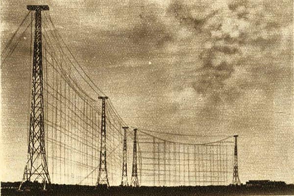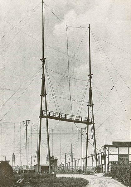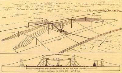 Als richtungsempfindliche Antenne wurde dort zunächst ein V-förmiger Luftdraht mit 900 Metern Schenkellänge errichtet.