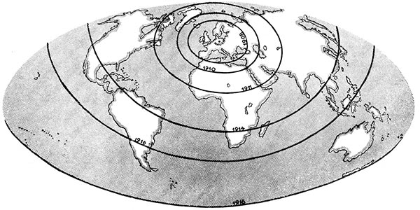 Obwohl in den 1930er Jahren schon längst Röhrensender Stand der Technik waren, wurden die Maschinensender 1937 noch modernisiert. Aus dem Jahr 1937 stammt eine Karte in der Nauen als der Mittelpunkt der Welt dargestellt wurde: