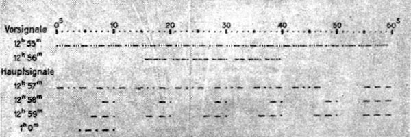 Dieses wurde täglich 2 mal (jeweils 1.00 Uhr und 13.00 Uhr Mitteleuropäischer Zeit) vom Sender I auf einer Welle von 18.000 m gesendet.