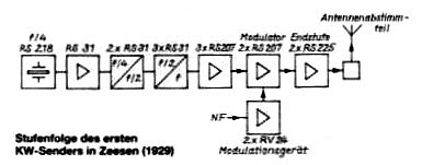 Am 07.10.1932 machte ein Ferninterview aus Berlin nach Übersee für den Kurzwellensender Zeesen Schlagzeilen und die Kurzwelle populär. Im Herbst 1932 kam noch ein zweiter quarzgesteuerter Sender der Firma Lorenz mit 5 kW für Sendungen nach Übersee hinzu. Er war achtstufig konstruiert, verwendete zwei Röhren RS 255 und war wie Sender 1 gittergleichstrommoduliert.