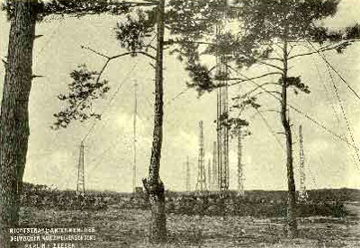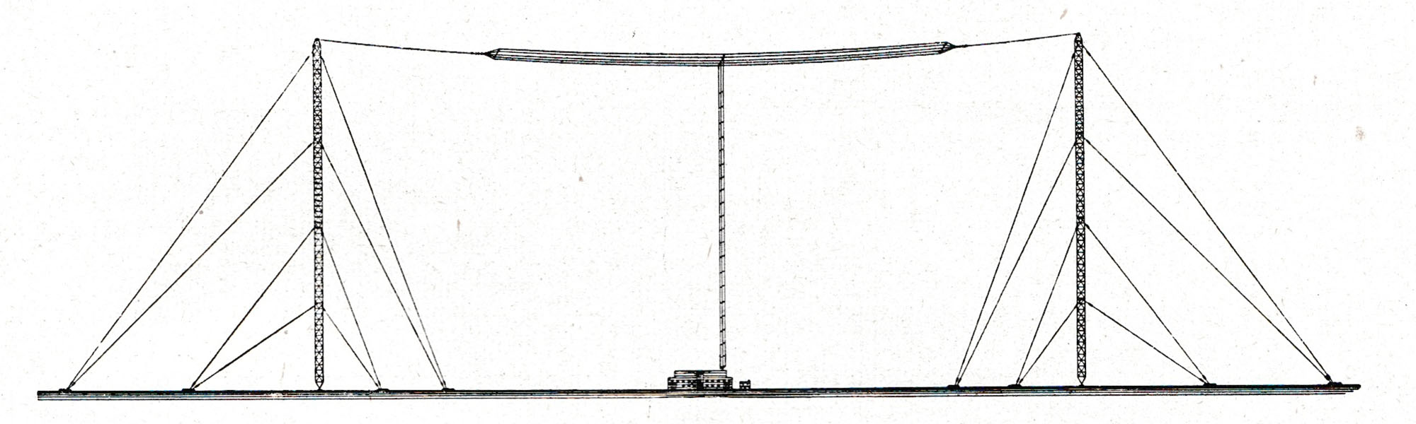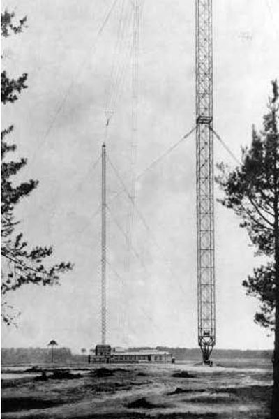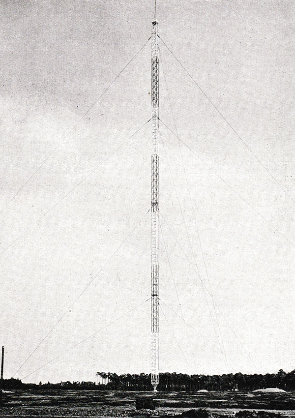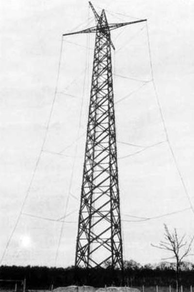 1932 bekam dieser Holzturm noch eine zweite Rundstrahlantenne um Tag und Nacht auf verschiedenen Frequenzen arbeiten zu können.