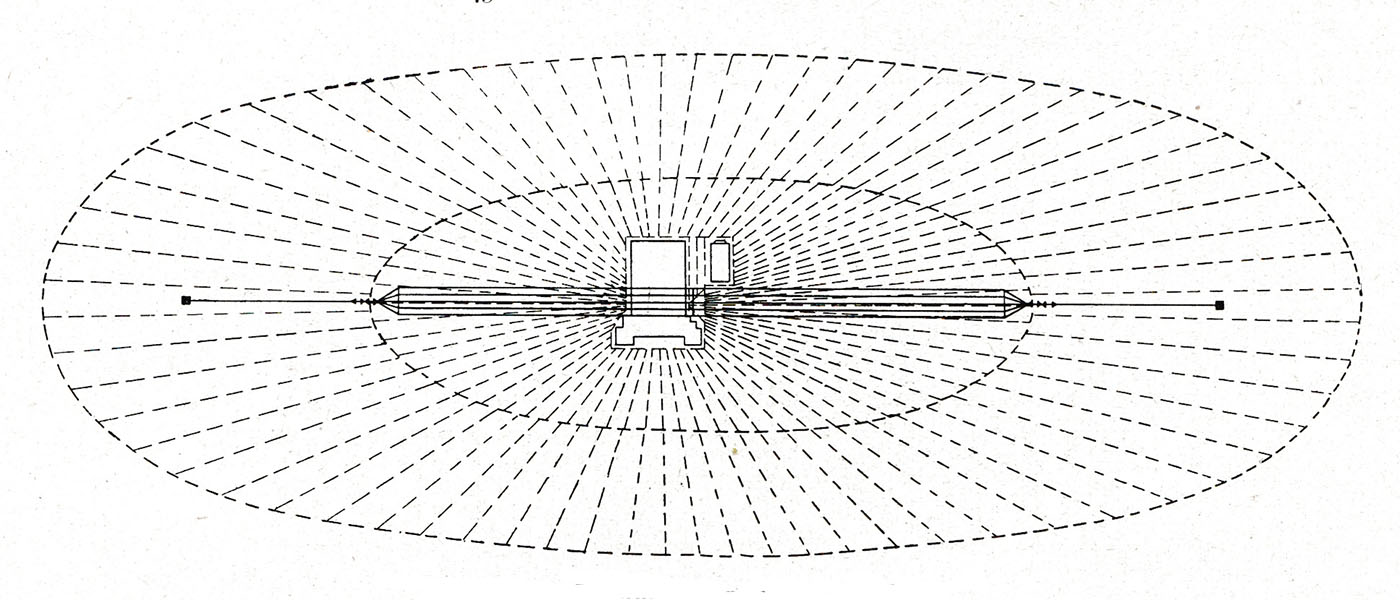 Zur Erzielung eines gleichmäßigen Erdpotentials war unter dem Sender ein 3mm-Kupferdraht- (Bronzedraht-) netz in einer Tiefe von 30 cm verlegt, das mit der Stationserde leitend verbunden war. Ferner war das Hallendach zwecks Abschirmung gegen die Einwirkung der Antenne auf den Sender mit einer Kupferblechbekleidung versehen, die ebenfalls leitend mit der Sender- und Stationserde verbunden war.
