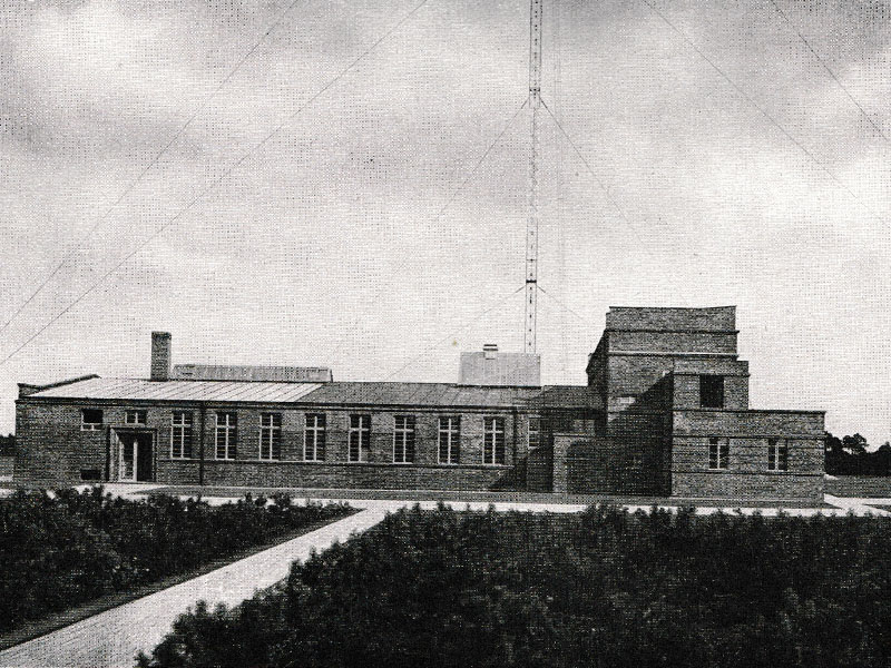 Das Stationsgebäude war in südlicher Richtung etwa 4 km von der Hauptfunkstelle entfernt. Ende 1926 begannen die Arbeiten. Dafür wurde eine Fläche von 300 x 700 Meter abgeholzt.