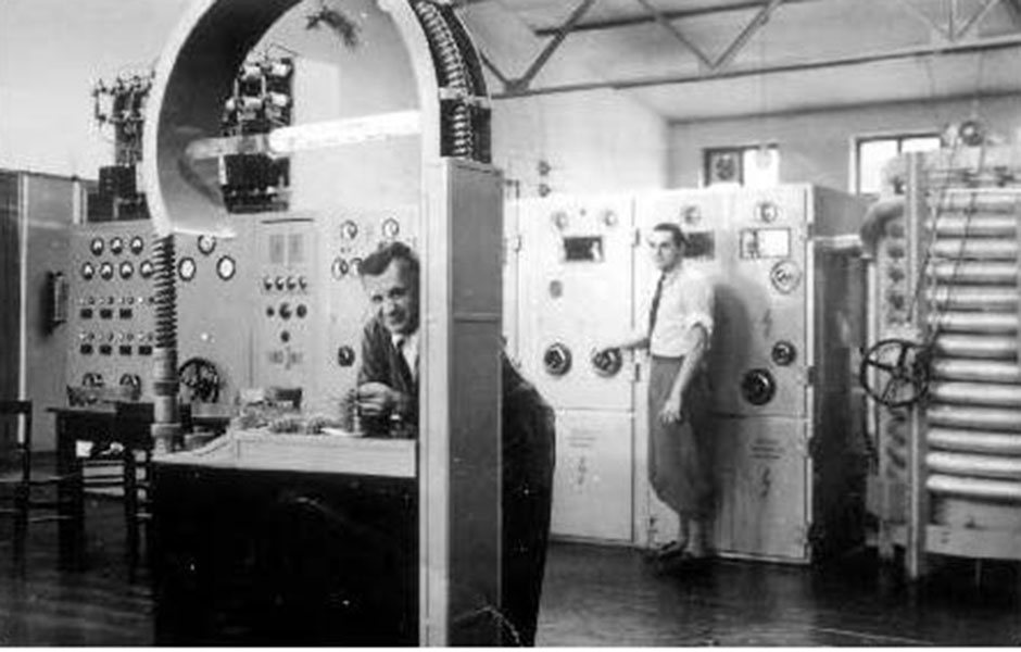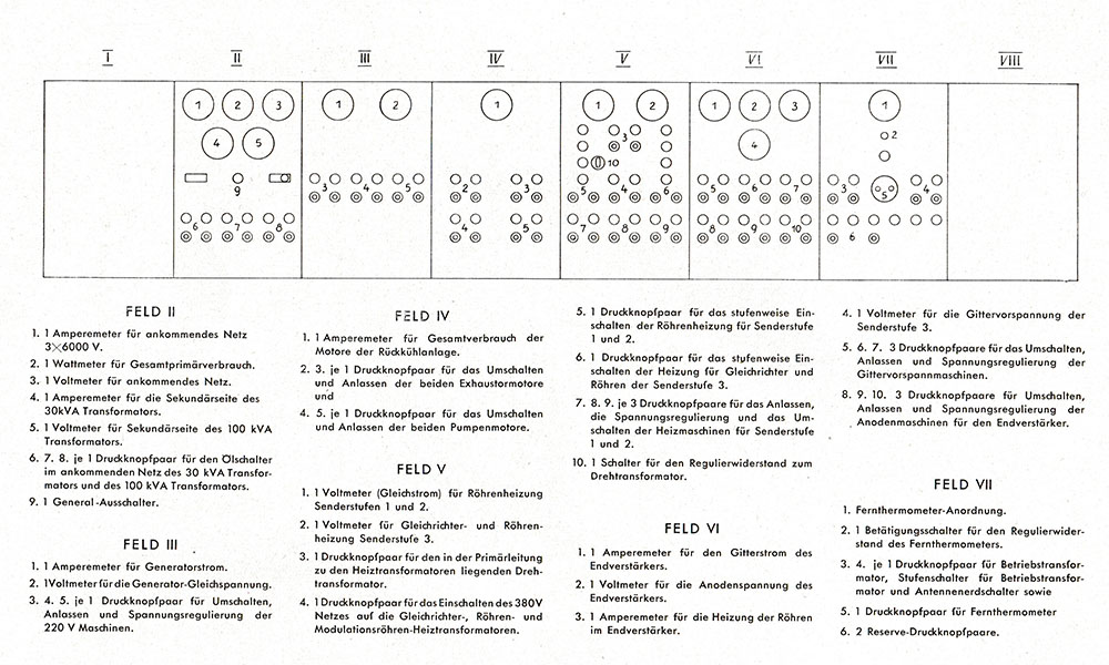 Die vollautomatische zentrale Bedienung geschah von dem Schaltpult aus. Dieses befand sich vor der Sendeanlage.